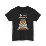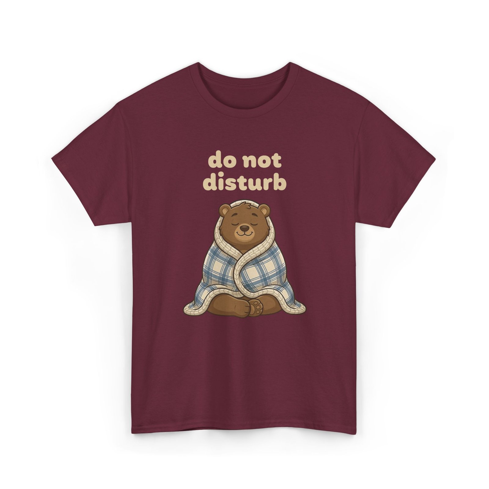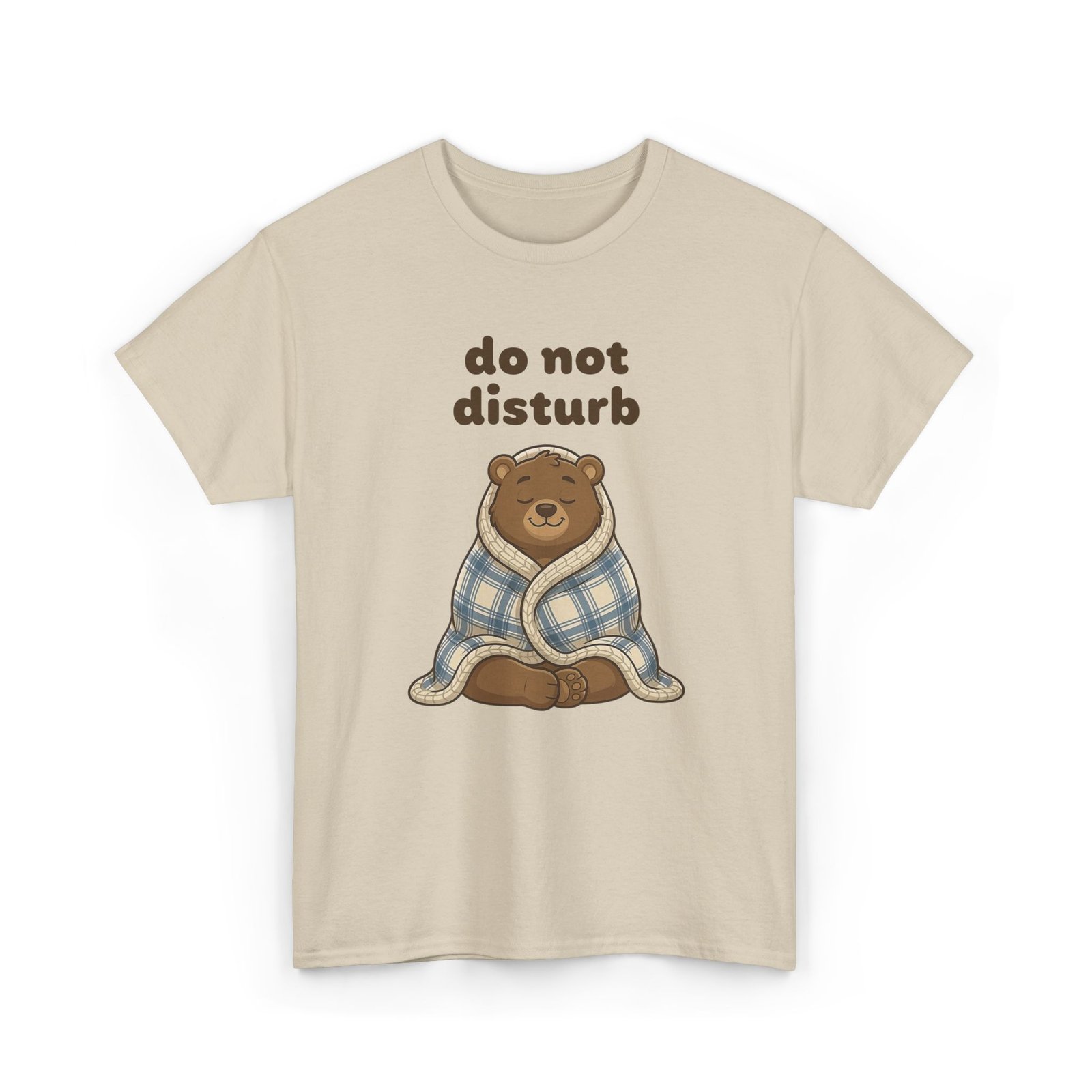 This design features Barry wrapped tightly in a cozy blue plaid blanket, sitting cross-legged with his eyes closed and a peaceful smile on his face. He looks like a soft, happy pyramid of isolation. The text “do not disturb” floats above him, serving as a polite but firm notice to the outside world.