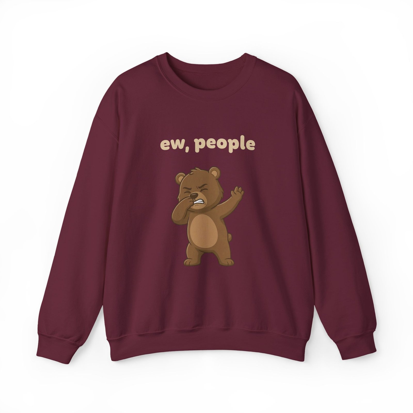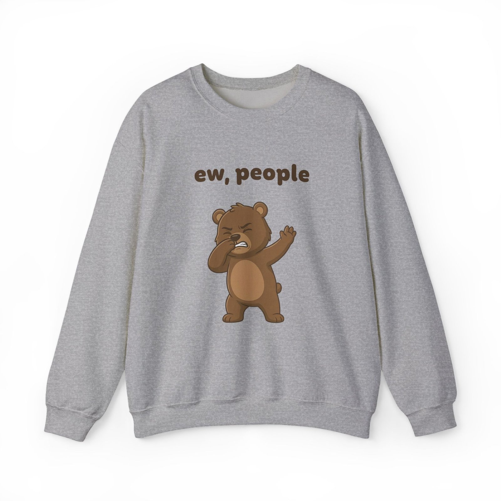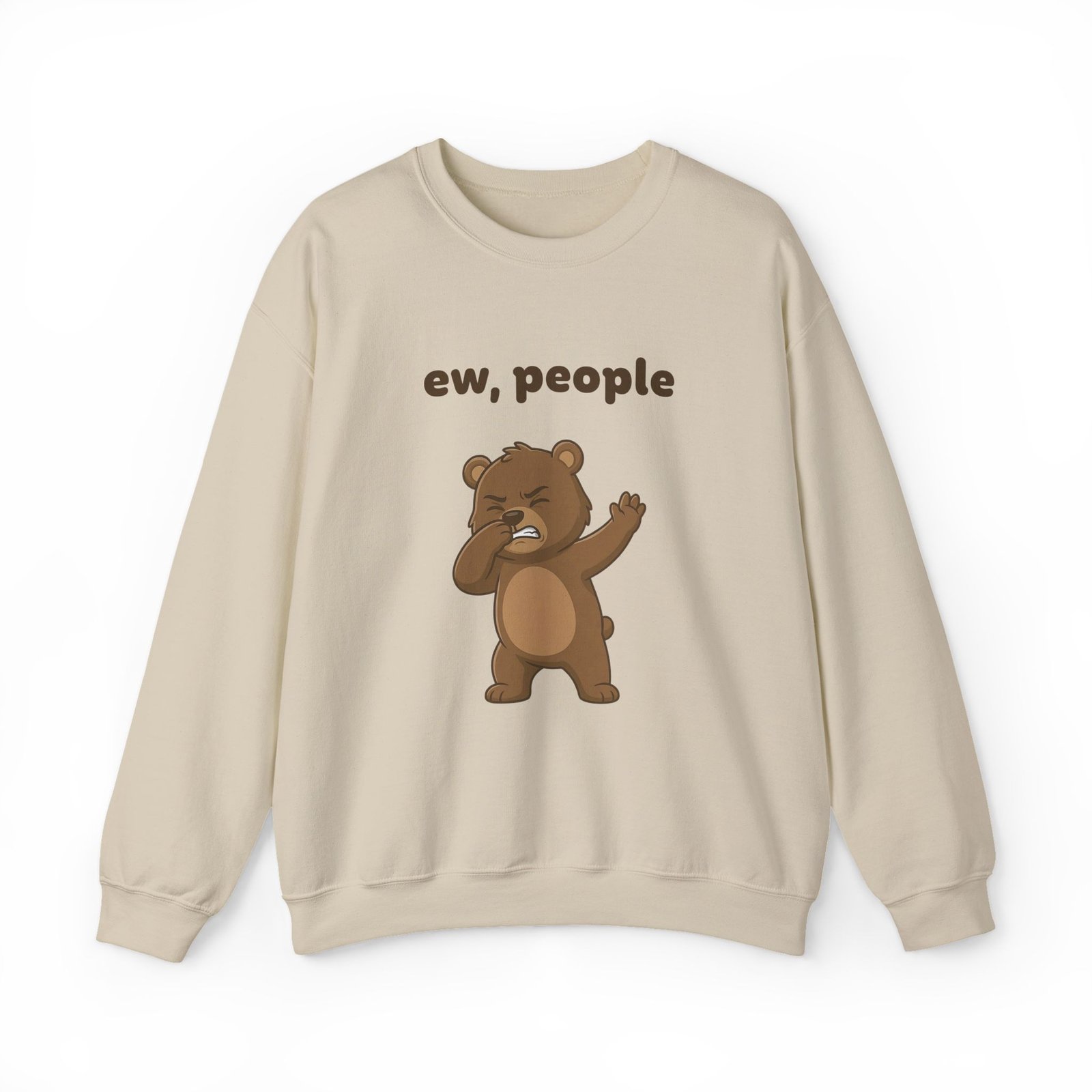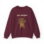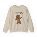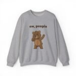 The design features Barry in a moment of pure, unfiltered judgment. He is pinching his nose shut and waving his hand dismissively, clearly overwhelmed by the sheer amount of humanity surrounding him. The bold text “ew, people” floats above him, serving as a polite request for everyone to step back.