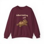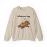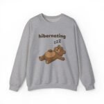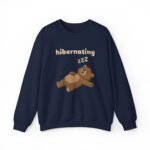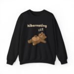 This sweatshirt is the official uniform for unconsciousness. The design features Barry in a state of deep, unbothered slumber, lying flat on his back with his paws flopped open. To emphasize the quality of his nap, there is a small string of drool escaping his mouth and a floating “ZZZ” above his head. The text “hibernating” serves as a legal notice that you are currently out of service.